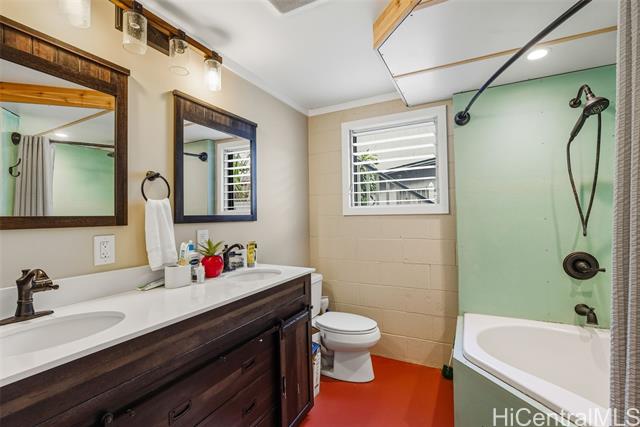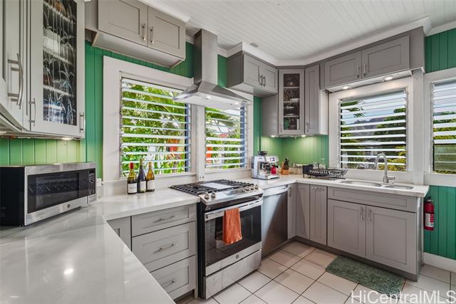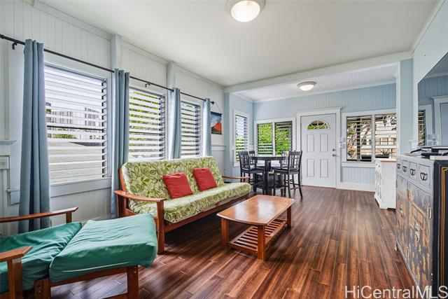 An amazing investment opportunity you do not want to miss: a Single Family home with an unbeatable, highly sought-after location! A block in on a private lane, gated on one side and off of Kapahulu Ave, behind First Hawaiian Bank. Upstairs offers a tastefully upgraded and well cared for 2bd/1bath with a kitchen and a covered patio with Diamond Head and City views. Downstairs is a renovated studio with durable, easy to maintain upgrades. Enjoy generous 2-car carport and completely fenced in, leveled, easy to maintain yard. Just the studio is currently rented for $2,900 a month. Live in one and rent the other, or rent both. The studio features new cabinets, countertops, newer appliances and durable polished concrete floors. Upstairs offers high 9ft ceilings, hard wood and engineered bamboo flooring and newer appliances. Gas range, water heater and dryer for cost efficiency. The home is extremely conveniently located near Ala Wai Golf course, world famous Waikiki, Waikiki beach, Kapiolani Park, Diamond Head, public and private schools and a vast variety of shopping, dining, recreational activities and entertainment. Do not miss this one, call to schedule your private tour.