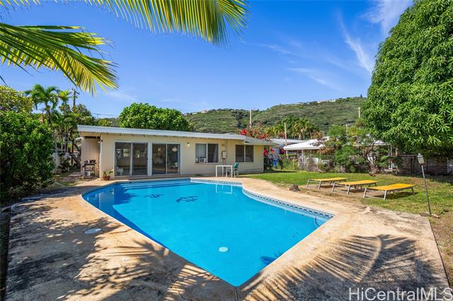 This single level 3-bedroom/2-bath with a pool is located on a large level lot in the desirable Niu Valley neighborhood. The seamless flow between the kitchen, dining, and living area creates an inviting atmosphere for both daily life and entertaining. Bring your design ideas and some TLC to restore this charming house to its full glory. Ample parking. Close to park, beaches, shopping, dining etc....