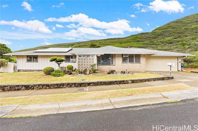 Welcome to this contemporary single-level residence in highly desirable Niu Valley-an exceptional community in one of East O'ahu's most coveted neighborhoods. This expansive, well-cared-for home offers a generous layout with tremendous potential to elevate and personalize to your taste. Notable features include a remodeled kitchen, newer roof, and a valuable 16-panel owned photovoltaic system with net metering. Positioned on a level lot at the end of a tranquil cul-de-sac, the property enjoys privacy and a premier setting. Originally designed as a three-bedroom home, one of the rear bedrooms has been opened to create a spacious primary suite-an inviting retreat that can easily be reconverted to restore the third bedroom, if desired. Don't miss out on an exceptional opportunity to transform this home into your ideal haven or smart investment! 1st Open Sun. 1/25 btwn 2-5pm. One or more photos may have been enhanced.