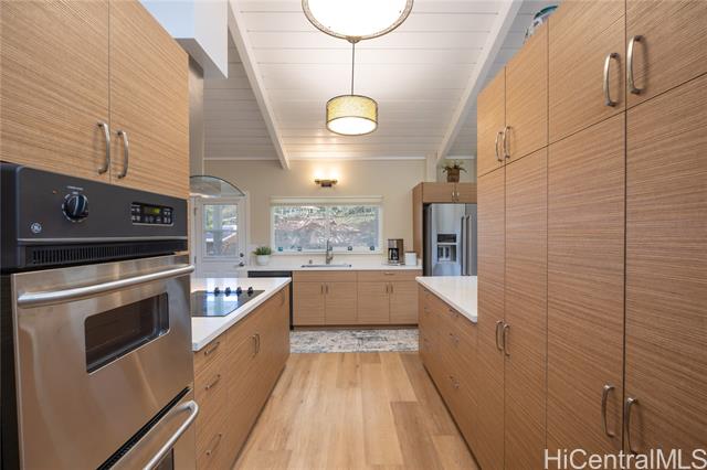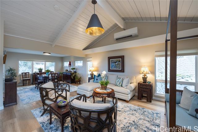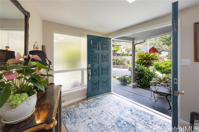 Nestled at the back of Niu Valley, this elegant home offers a perfect blend of privacy, style, and sophisticated living. Enjoy beautiful mountain and distant ocean views from multiple vantage points. The generous yard provides a haven for gardeners or a perfect space for outdoor entertaining and play. The home exudes style, featuring vaulted ceilings, abundant natural light, and a thoughtful layout and curated remodel inside and out. The primary suite is separate, well-appointed, offering comfort and privacy for family or guests and a spacious 2-car garage includes extra storage. This lovely home is move-in ready, an excellent value in the current market! Conveniently situated near beaches, parks, restaurants, shopping, schools, and hiking trails, this sought-after Niu Valley location in East Honolulu offers easy access to everything you need. Enjoy the comfort and peaceful setting of this desirable neighborhood and the refined island living this home presents.