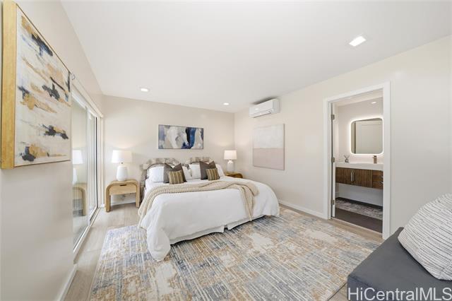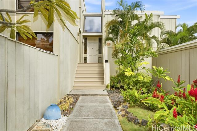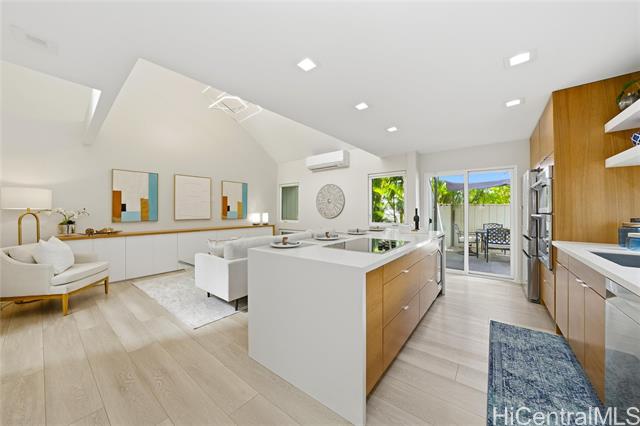 Move right into this beautifully updated East Oahu townhome, perfectly situated steps to the beach, parks, and everyday conveniences. Thoughtfully updated with modern comforts, the home features split A/C units, double-pane windows, custom-built-ins, and wide-plank hard-surface flooring throughout. The kitchen is a true standout, offering abundant contrasting cabinetry, a convection wall oven with microwave, wine refrigerator, an oversized island ideal for gathering, and a striking countertop-to-ceiling tile backsplash. The reimagined primary suite now boasts an expansive, custom walk-in closet and a thoughtfully designed en-suite bathroom, creating a serene retreat. A versatile second bedroom adapts effortlessly to your lifestyle, serving as a home office, guest room, or full-time bedroom complete with a built-in Murphy bed and integrated cabinetry. Seeing is believing.