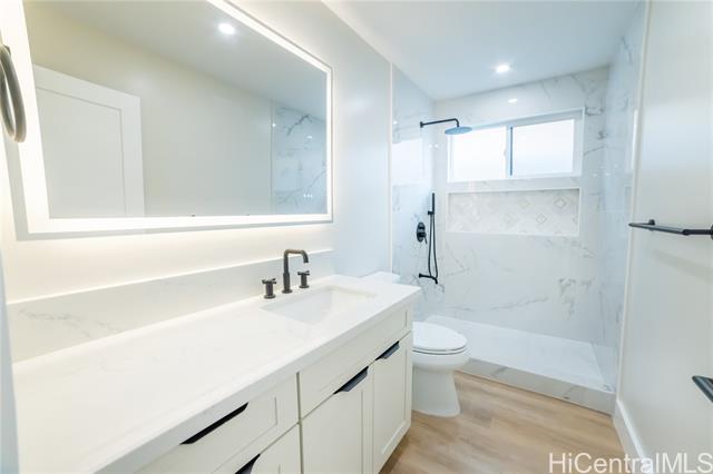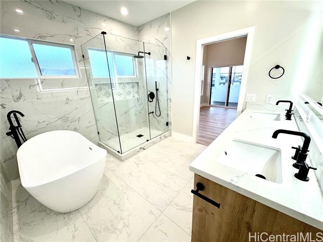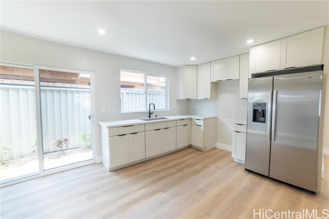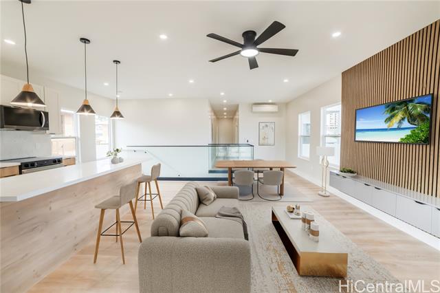 Motivate Seller. This beautiful brand-new, detached CPR modern home:5 spacious bedrooms and 4 full bathrooms, landscape yard is perfect for multi-generation, rental income(3/2 upstairs, 2/2 downstairs), or buyers who want a single home without condo fee. This home features an open concept living room, a modern kitchen with beautiful cabinetry, stylish backsplash, and stainless-steel appliances. The primary bedroom includes a walk-in closet, and a luxurious bathroom with soaking tub, glass door shower, and double sink vanity with LED vanity mirrors. Each upstairs bedroom has its own private lanai and the most spacious lanai is connected to the living room; this creates a perfect setting for family gathering or relaxation area after a long day.7 split AC units & multiple ceiling fans, the home can remain comfortable all year long. Two garages for thee cars includes a EV-power charging station, and Smart cable box for all internet. This home located close to the public schools, private schools, University of Hawaii at Manoa, Chaminade University, Kahala Mall, and a variety of restaurants. Easy access to freeway. The home truly provides comfort & convenience.