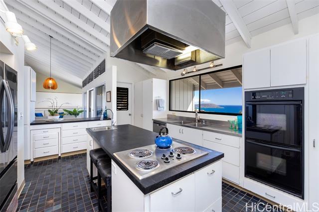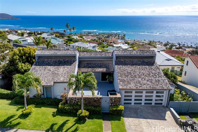 Situated along Waialae Iki, this exceptional residence has been crafted with both function and aesthetic elegance in mind. Positioned to capture breathtaking panoramic vistas, the home overlooks Koko Head, Oahu's southern coastline, and the Pacific Ocean. The dramatic split-level 5-bedroom, 4.5 bath floor plan introduces an open atmosphere, highlighted by vaulted ceilings and versatile loft spaces ideal for a creative studio or library. At the heart of the home, the grand living area impresses with soaring ceilings, creating an unparalleled expansive setting. The main residence encompasses 4-bedroom and 3.5-baths, while a separate lower-level suite offers privacy for guests or multi-generational living, complete with 1-bedroom, 1-bath, a wet bar, and a private entrance. Outside, terraced grounds and open lanai spaces offer room to entertain. 1789 Laukahi Street is situated moments from notable shopping, dining, and sandy beaches. This custom home offers a rare architectural pedigree for the discerning buyer.