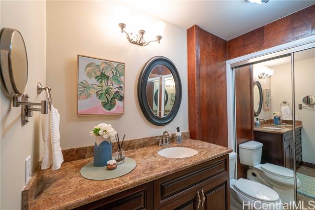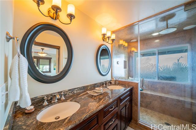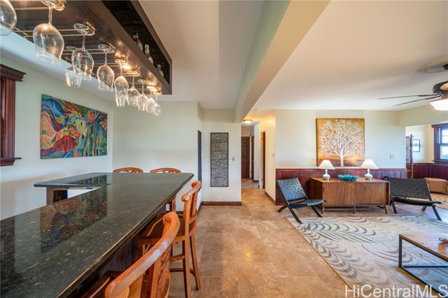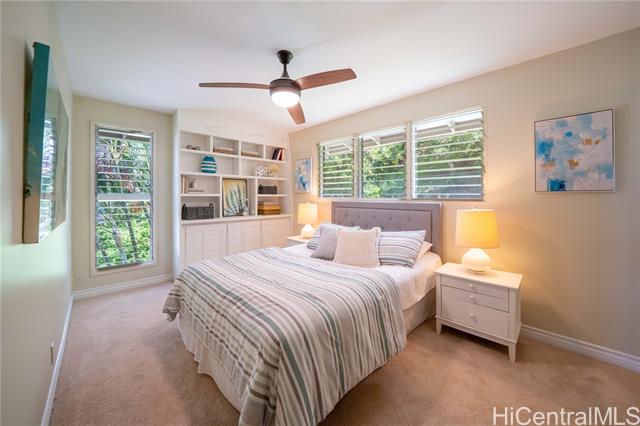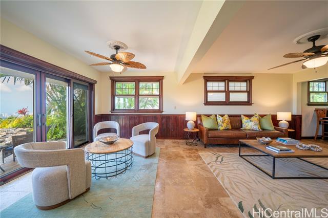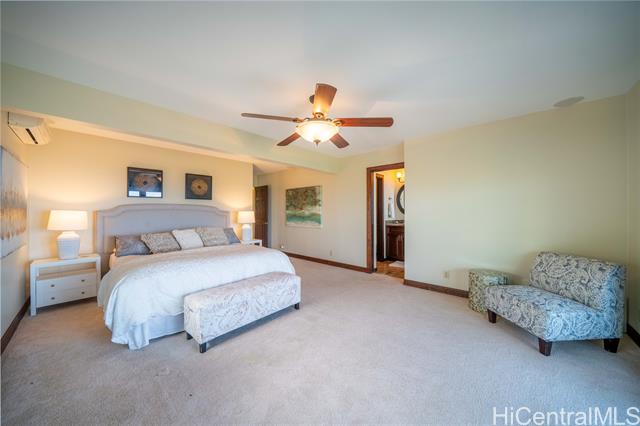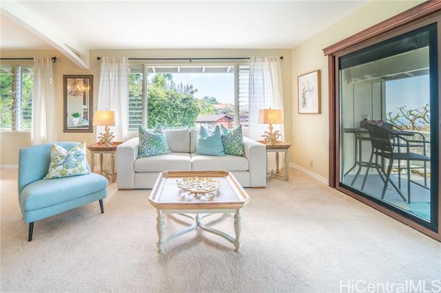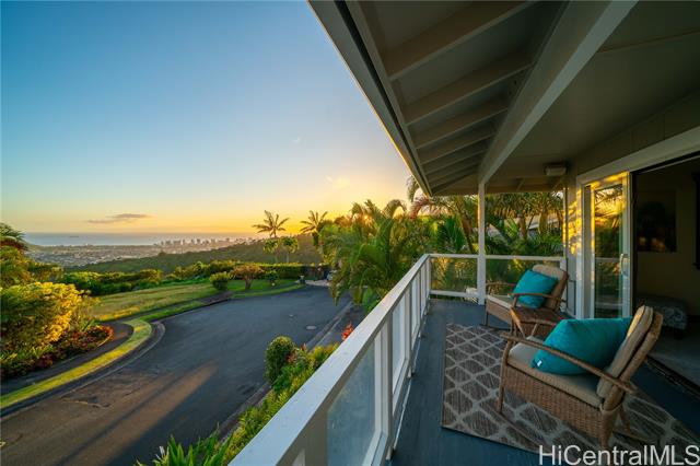Perched on a serene hillside with stunning hilltop appeal, this beautiful two-story home offers panoramic views of Diamond Head, the coastline, the city, and breathtaking sunsets. Featuring three bedrooms and two and a half baths, this freshly painted residence showcases high-end cabinetry and granite countertops throughout. A brand-new split AC system complements the spacious living and dining area, seamlessly connected to a large lanai—perfect for outdoor enjoyment. The primary suite is a true retreat, offering a generous layout with a walk-in closet, a spa-like ensuite with a double vanity and steamer shower, plus a private lanai for peaceful mornings or evening relaxation. The lower level includes a full bath, bedroom, and a wet bar with its own private entrane offering a versatile use—ideal for in-laws, adult children, guests, or even an income booster. It overlooks the inviting hot tub and enoys a stunning backdrop of sweeping views. Invitingly priced, easy to keep & easy to love! As a bonus, this home comes with exclusive membership access to Waialae Nui Rec Center offering a refreshing pool, playground, clubhouse and lash green area/dog park (please verify guidelines).