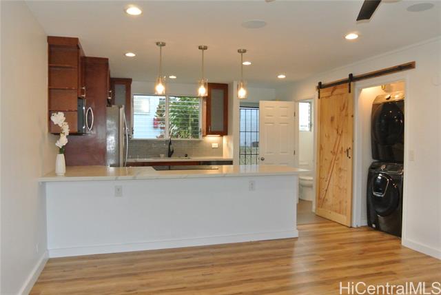 Price Reduced !! Remodeled townhouse in Waialae Gardens community. Two bedroom, two bath, two parking! Two story townhouse with bright living room, open kitchen with granite countertops and deep kitchen sink. Washer/dryer located in closet with modern barn door. Ceiling fans throughout with additional window air conditioners. In the Kahala neighborhood, conveniently located near freeway access, groceries, restaurants, shopping mall and more!