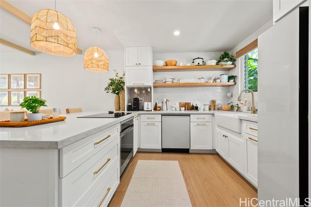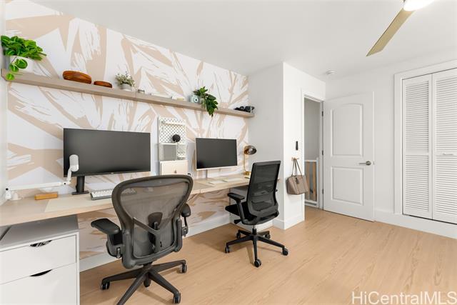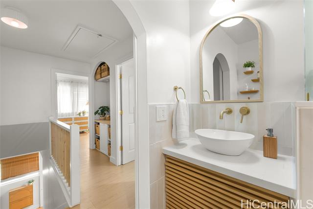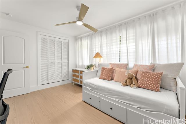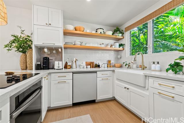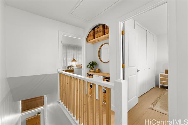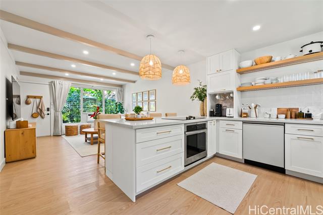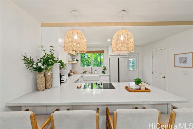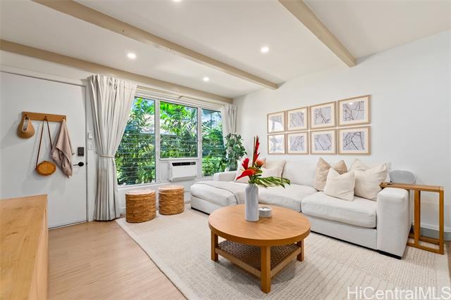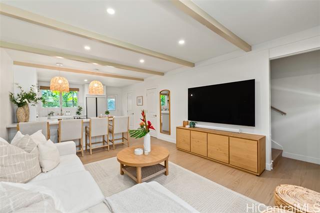 This is your chance to live in the coveted Kahala neighborhood. Welcome to this beautifully updated Tropic Gardens 2-bedroom, 1.5-bath townhome offering over 1,000 sq ft of living space, near Kahala Mall, H-1 freeway on-ramp, and Ku'ono Marketplace. Truly a hidden gem. Features an open-concept living space with coastal vibes and natural light. The kitchen boasts Samsung Bespoke appliances, a 48-inch island perfect for hosting, and custom open shelving. Washer/dryer tucked away and optimized for storage — plus bonus attic storage, a rare find in townhome living. Upstairs are two spacious bedrooms with ample closet space. The bathroom features surround tiling, custom barn doors, and a glass shower enclosure — your own private spa oasis. Capital improvements completed in 2025: new landscaping, drainage, exterior paint, roofing, and termite tenting — peace of mind from day one. Includes 1 assigned parking stall with ample street parking. Pets welcomed! A neighborhood park is located across the street — perfect for outdoor enjoyment. Come see this beautiful home and make it yours — it won't last long!