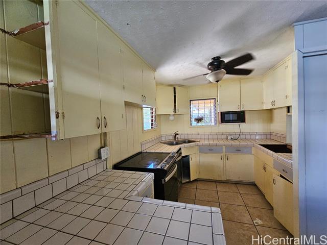 Diamond in the rough waiting to be discovered. A single family home with no HOA fees. Located just minutes from the sand and surf, this spacious 5-bedroom, 2-bathroom haven is the ultimate Ewa Beach lifestyle opportunity. Large interior sq ft of 1,702 on a 6,600 sq ft lot is a commodity in the neighborhood. Venture inside to high ceilings and a flood of natural light—a blank canvas ready for your vision. This is a rare chance for a new owner to customize their dream Hawaiian retreat! Enjoy a sprawling, fully fenced backyard, perfect for pets, play, and large-scale entertaining. The open carport provides ample parking and possibilities of converting it into a garage. Unbeatable location near shopping, schools, restaurants, surf pool, dog parks, beach and shopping centers makes everyday life convenient. This home is ready to renovate and for the new owner to put their artistic finishing touches and convert it into a plantation-style luxury. The large extra sq ft extension has been converted into 2 bedrooms. Number of bedrooms doesn't match tax records. At least one photo may be enhanced.