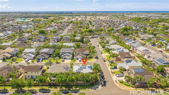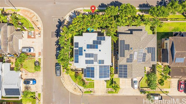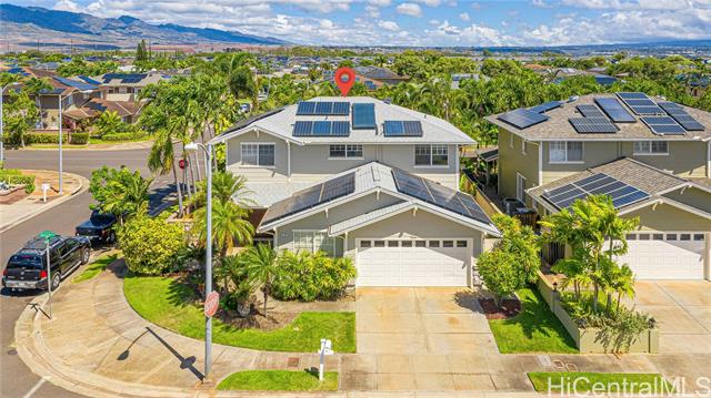 Discover this spacious executive-style home in Ewa Gentry Carriages! The desirable Lexington model offers 2,496 sqft. of interior living with 4 bedrooms, 3 bathrooms, a 2-car garage and an attached workshop situated on a corner lot. Step through the double entry doors into a welcoming secondary living room that flows into the formal dining area. The kitchen boasts a breakfast nook, generous cabinet space, island seating and opens up to the formal living room complete with a wet bar. Located just off the living room is the separate laundry area which leads into the garage and workshop. Upstairs you’ll find 3 guest bedrooms, a study nook, full guest bathroom and a spacious primary suite with its own ensuite bathroom and a walk-in closet with a built-in storage system. Outside, enjoy your private backyard retreat with mature palms providing shade which is ideal for gatherings and relaxation. Additional features include 51 leased solar panels resulting in a credit on current owner's HECO bill, a newer roof, brand new AC system and fresh exterior paint completed about 4 years ago. Enjoy the convenience of being near shopping, restaurants, banks and Ka Makana Alii mall just minutes away.