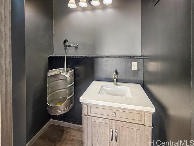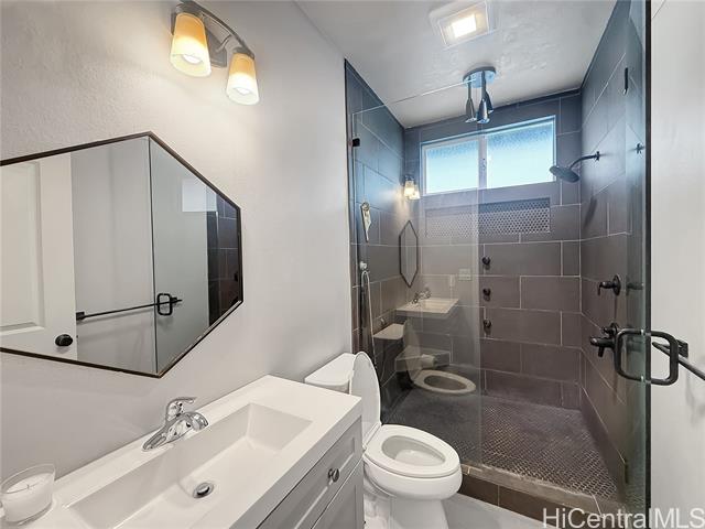 Experience elevated island living in this beautifully appointed 4 bedroom, 3.5 bath residence featuring an OWNED 17 panel photovoltaic system, Tesla battery and solar hot water heater for exceptional efficiency. The grand living and dining area showcases soaring ceilings, luxury vinyl plank flooring and dramatic 8 ft sliding doors that open to a covered lanai and private backyard. The designer chef’s kitchen is outfitted with a spacious island, stainless steel appliances, abundant custom cabinetry and a walk in pantry. A dedicated laundry room leads to a fully customized garage, thoughtfully converted into a media lounge with wet bar, half bath and built ins. The main level also offers a bedroom and full bath, ideal for guests or a refined home office. Upstairs, the primary suite is a private retreat with walk in closet, custom built ins and a spa inspired ensuite. Two additional bedrooms share a well appointed bath. A truly exceptional offering. 48 hr notice needed as its tenant occupied. Tenant will vacate July 31st.