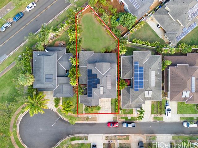 Escape to your own private oasis in this 4-bedroom, 3.5-bath home in the desirable Ewa by Gentry Haleakea neighborhood. This energy-efficient property features 23 owned PV panels, two Tesla batteries, solar water heater, and water filtration system, ensuring comfort and savings. Stay cool year-round with central AC. Enjoy the perfect blend of indoor and outdoor living with a beautifully covered lanai and a spacious backyard. A separate 1-bedroom, 1-bath casita offers a private space for guests or a home office. Located close to several nearby parks. This home combines modern amenities with a serene island lifestyle. Sold as-is.