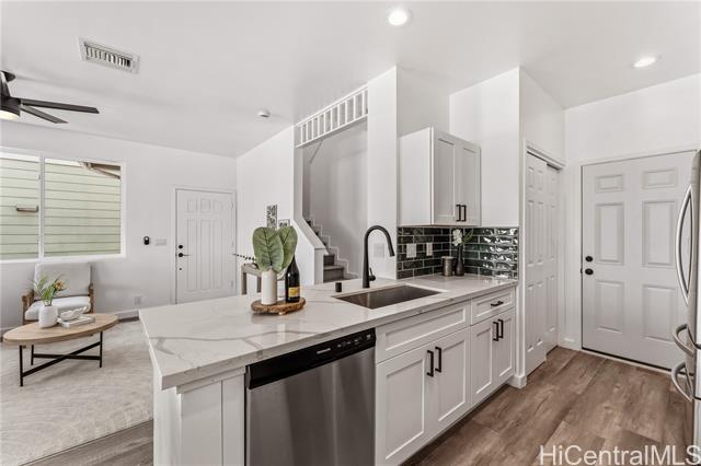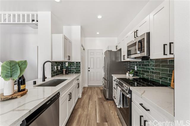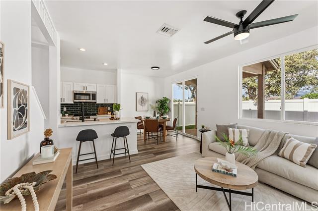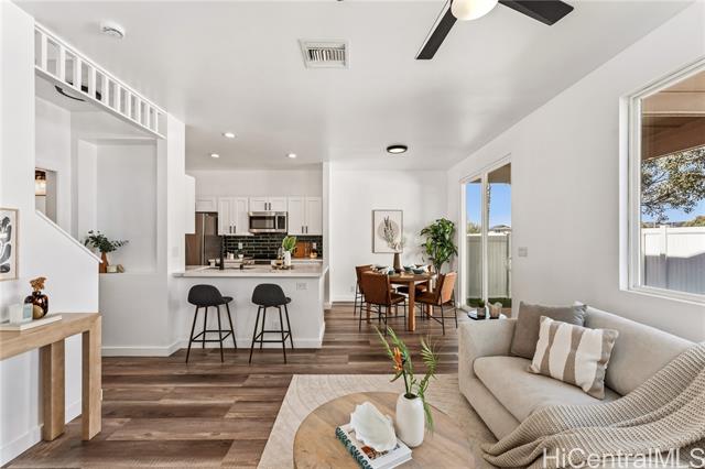 Built in 2011 and newly remodeled in 2025, this stunning 4-bedroom, 2.5-bath home features 1,334 sq. ft. of modern living space on a 3,119 sq. ft. lot. The home boasts brand-new vinyl flooring, stainless steel appliances, fresh interior updates, and newly landscaped grass, giving it a clean and contemporary feel throughout. Enjoy the comfort of central AC, a 2-car garage with additional guest parking, and access to a community pool perfect for relaxing or entertaining. Conveniently located just minutes from a variety of dining, shopping, and grocery options, this home offers both style and practicality in one of West O‘ahu’s most desirable communities. Experience modern island living at its finest