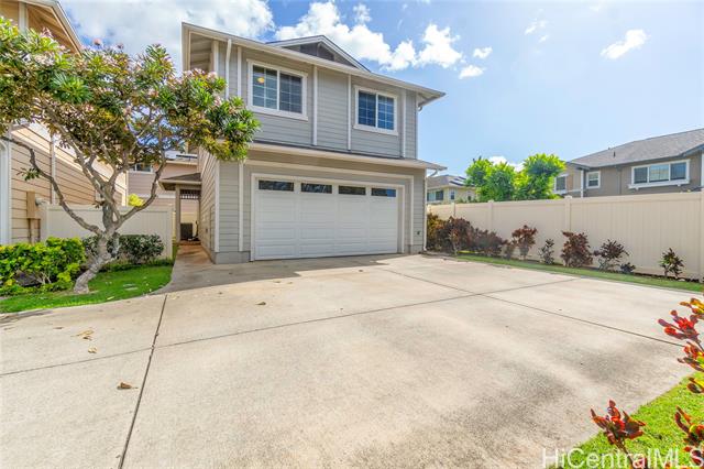 RARE lot option offering parking for 6-7 cars — two covered spots in the garage and 4-5 more on your personal parking pad. Located in Ewa Gentry Laulani-Trades, just steps away from the shopping center offering groceries, entertainment, and more. This original owner was granted custom features directly from the developer, including a massive parking area, built-in custom shelving near the kitchen, built in shelving for main bedroom walk in closet , an extended rear patio covering for double the shade, and the first-ever loft space on the second floor / 4th bedroom option (later made available to others). Enter through the 2-car garage to the kitchen, or from your private gated yard to the living room. Downstairs features an open concept with a kitchen that flows into the living area, a half bath for guests, and a large sliding glass door leading to an outdoor grilling space. Upstairs, find a loft area (which could be a 4th bedroom), the family bathroom, and all 3 bedrooms. The primary suite bosts a private bath and walk-in closet. Book a tour or explore our 3D virtual walkthrough online! Owner says Realtors and Buyers all welcome! One or more photos have been enhanced.