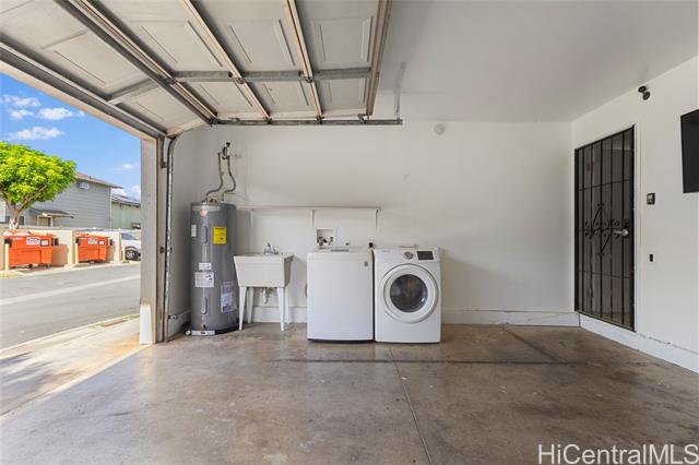 Refined and inviting, this 3-bedroom, 2-bath home in Lombard Way in Ewa by Gentry offers effortless comfort in a prime corner-lot location near the community entrance and across from guest parking. A low-maintenance yard and owned PV system reflect thoughtful, modern living. Inside, the freshly painted interior and vinyl flooring throughout the main living areas and first-floor primary bedroom create a clean aesthetic. The primary suite features a walk-in closet and full en suite bathroom on the main level adds ease, flexibility, and separation. Meanwhile, the spacious two-car garage provides ample room for parking and storage. Just minutes from Laulani Shopping Village and Ewa Town Center, this residence delivers a serene, lifestyle paired with everyday convenience. Ask us about VA assumable for eligible Buyers!