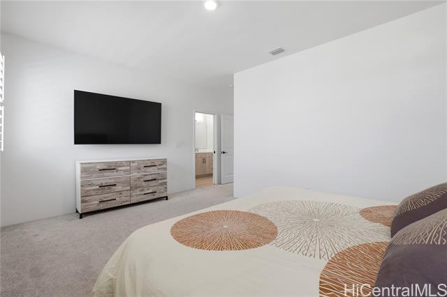 This exceptional Makamae residence blends refined design with modern efficiency, offering four bedrooms and three full bathrooms in a thoughtfully curated layout. A highly desirable main-level bedroom and full bath provide flexibility for guests or multigenerational living. The home is enhanced by a generous front yard, upgraded carpet padding for elevated comfort, and elegant plantation shutters throughout, creating a warm yet sophisticated ambiance. Energy-conscious buyers will appreciate the home’s robust efficiency features, including 18 owned solar panels, a Tesla battery, and a solar water heater system; delivering sustainability, comfort, and long-term savings.