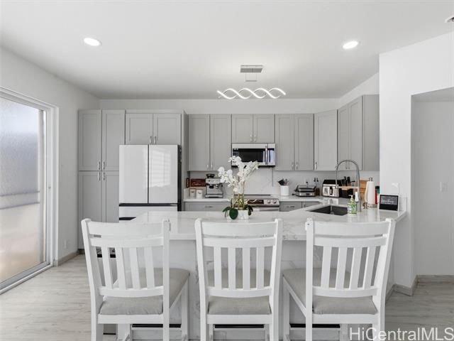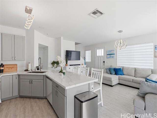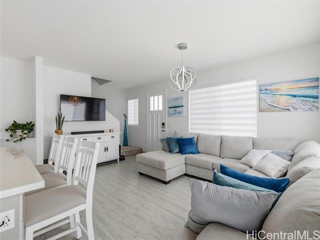 The Montecito and Tuscany community offers a picturesque and desirable location for aspiring homeowners. This particular property, featuring 3 bedrooms and 2.5 baths, rarely available detached corner unit. Beautifully remodeled in 2023 Living area, Kitchen and half bathroom. Solar Photovoltaic Installation with Battery Storage PV MODULE COUNT: 18 PV INVERTER COUNT: 18 # of PV Circuits: 2. The tranquil and peaceful ambiance of the community provides a welcome escape from the busyness of city life. Close proximity to various amenities. Residents will enjoy easy access to nearby shops, restaurants, and entertainment options, ensuring convenience and a vibrant lifestyle. Whether you enjoy hosting gatherings or desire a spacious environment to unwind, this home caters to your needs. Residents enjoy exclusive access to the community's private pool, covered cabanas for BBQs and gatherings, and pavilion areas. Perfectly positioned next to the Hawaii Prince Golf Club, walking distance to Laulani Village Shopping Center, a dog park, schools, and pristine beaches, with close access to Ka Makana Ali'i Mall, diverse dining, and West Oahu's vibrant amenities.