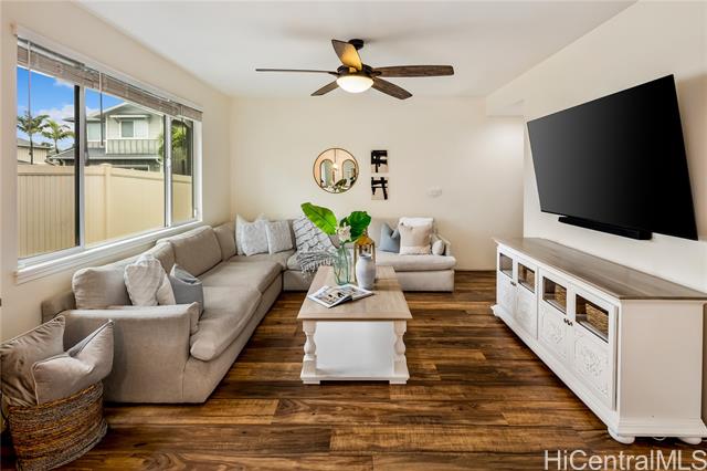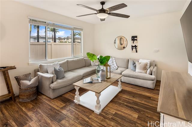 Tucked within the well-kept enclave of Parkside in Ewa Beach, this beautifully maintained residence offers a rare blend of comfort, security, and everyday convenience. This spacious 3-bedroom, 2.5-bath home features a 2-car garage plus an extended parking apron accommodating two additional vehicles, ideal for both residents and guests. Thoughtfully upgraded, the home showcases a tastefully updated kitchen and renovated bathrooms. Upgraded flooring flows seamlessly across the first floor, enhancing both style and durability while complementing the home’s bright, open layout. The home also features a bonus room, a flexible space that can easily adapt to your lifestyle, whether as a home office or playroom. Parkside offers a quiet, community-oriented lifestyle with amenities that feel like a private retreat. Residents enjoy access to a swimming pool, whirlpool spa, and BBQ areas—perfect for relaxing weekends or entertaining. All of this comes with the added benefit of a low maintenance fee, making this a great opportunity to own in one of Ewa Beach’s most desirable and private communities. VA Assumable with a 2.75% interest rate, a balance of $631,271.07 and monthly amount of $3,206.