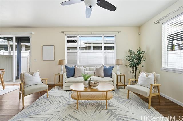 Welcome to Ewa Gentry Parkside! This beautiful 3-bedroom 2.5-bathroom home sits close to the community pool, ideal for entertaining or enjoying a relaxing day poolside. The large primary suite features an ensuite bathroom with dual vanity, a large walk-in closet, and a spacious retreat perfect for a nursery, sitting room, home office, or close it off to make a 4th bedroom. The open concept first floor is great for hosting family gatherings. The kitchen has ample storage space with an oversized pantry. Close to restaurants, beaches, and more! Best of all, the HOA just DECREASED their maintenance fees to $389 monthly, which includes your water and sewer. Come see all this home has to offer!