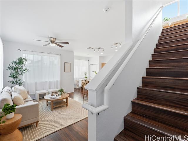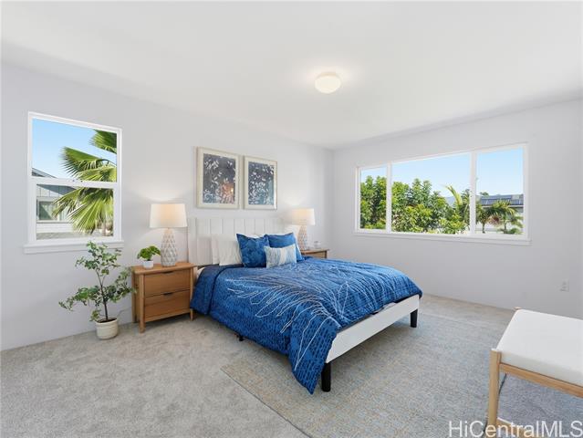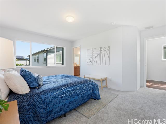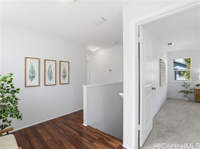 Welcome to SeaBridge, where the ease of West Oahu living meets the comfort of a well-designed home. Set on a desirable corner lot with nearby guest parking, this 4-bedroom, 2.5-bath residence offers a bright, airy feel and a layout that flows easily from one space to the next. At the heart of the home, the spacious kitchen island creates a natural gathering place for morning coffee, casual meals, or hosting friends, with additional room for dining or a cozy breakfast nook. Natural light fills the main living area, while fresh interior paint and new carpet give the home a clean, refreshed feel. Upstairs, all bedrooms are thoughtfully placed for a functional separation of space, including a primary suite with a walk-in closet. An enclosed garage adds everyday convenience with room for parking, storage, and all the extras that come with island life. From beach days at White Plains to nearby golf, shopping, dining, and everyday essentials at Laulani Village, Ka Makana Ali‘i, and Costco, this location makes it easy to enjoy the best of West Oahu. Come home to a community that feels cared for and a lifestyle that feels effortlessly connected.