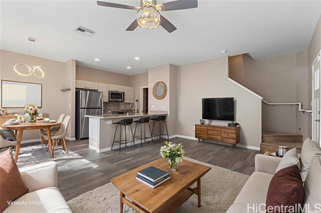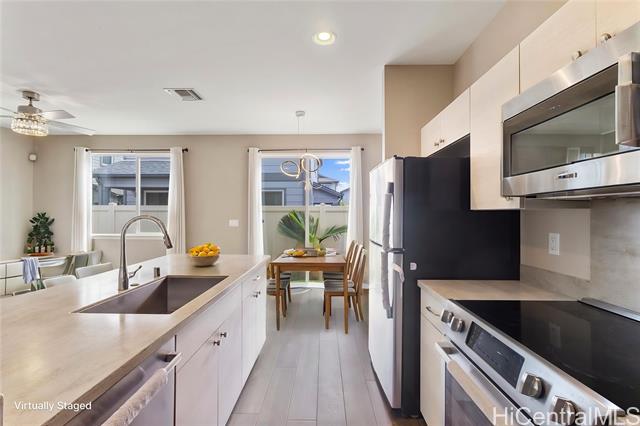 Welcome to this well maintained 3-bedroom, 2.5-bath single-family home in the highly desirable Ewa Gen Seabridge. Offering exceptional value, this home features a beautiful open layout perfect for both comfortable living and entertaining. Enjoy the ease of low-maintenance living with a monthly fee of just $392, which includes water and sewer!! The home is nestled in a warm and welcoming neighborhood known for its community feel and well-kept surroundings. Ample guest parking is thoughtfully located throughout the community, providing convenience for family and visitors alike. Whether you're a first-time homebuyer or looking to upgrade, this home presents a fantastic opportunity to own in one of Ewa’s most sought-after neighborhoods.
