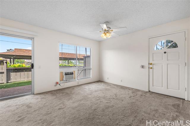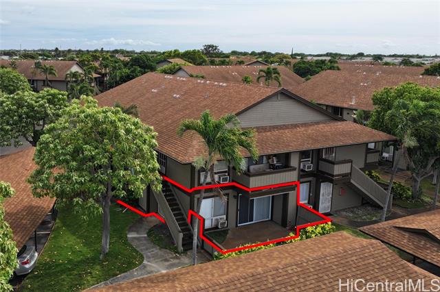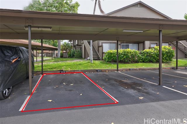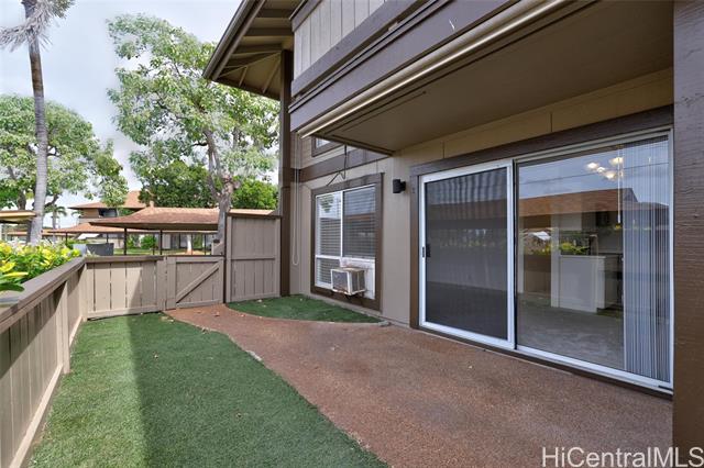 Welcome to Palm Villas! This desirable ground-floor corner unit features 2 bedrooms and 1.5 baths. A major highlight is your DAILY CONVENIENCE: one-car covered parking stall located just steps from your front door, providing comfort and SAFETY. An additional open stall is DIRECTLY ACROSS COVERED STALL, BOTH VISIBLE FROM UNIT. The mailbox cluster, a set of visitor stalls and trash facility are JUST STEPS AWAY FROM THE FRONT DOOR, making daily routines easy and secure. The unit also offers a fenced-in lanai, perfect for privacy and outdoor enjoyment, WITHOUT VIEW of NEIGHBORS. Conveniently located minutes from neighboring strip malls, KA MAKANA ALI'I, and beautiful West O'ahu beaches, shopping, and dining.