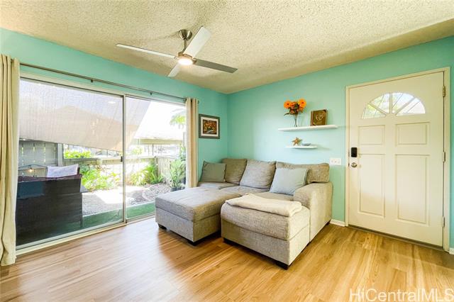 Back on Market with a Price Reduction. Welcome to a beautifully updated ground-floor home in the iconic Palm Villas community of Ewa Beach, offering an accessible entry point into homeownership. This move-in-ready residence features a kitchen renovated in 2023 and includes two assigned parking stalls. Live in the heart of a vibrant, master-planned community famous for its majestic canopy of royal palm trees, with premier amenities and an unbeatable central location just minutes from Ewa Town Center for shopping and dining, and easy access to Ewa Beach Park. Enjoy excellent connectivity to Fort Weaver Road and the H-1 Freeway for convenient commutes. This property combines modern comfort with the established charm and convenience of a highly sought-after neighborhood. Home can come furnished for the right offer.