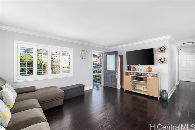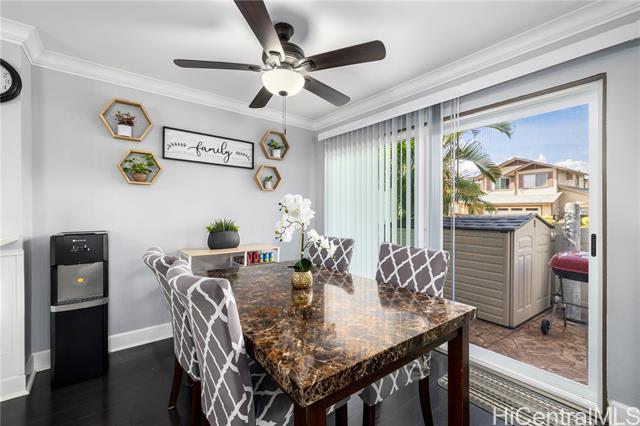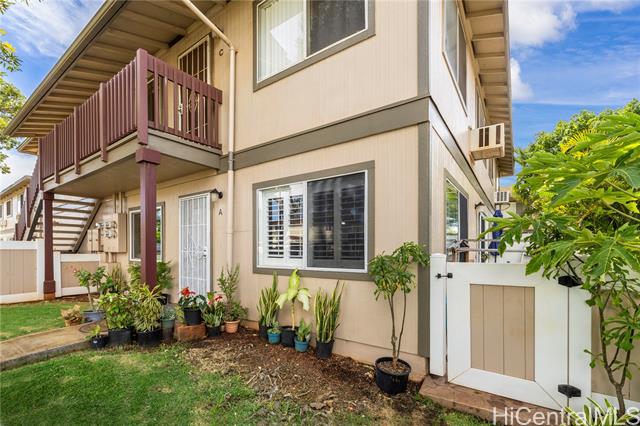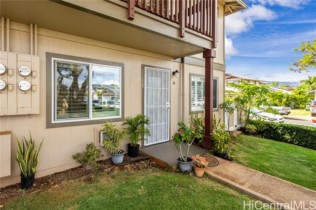 Why rent if you can buy! Check out this gem, Rarely available GROUND FLR END UNIT- Feels Like a Single-Family! Pet-friendly (2 pets allowed buyer to verify) with pool & playground access. This well -maintained 3-bedroon, 2-bath townhome blends comfort, style, and functionality with thoughtful upgrades throughout, 2 parking stalls w/lots of street parking, private 225 sq. ft. lanai with stamped concrete and extra storage - perfect for entertaining or relaxing, thoughtful upgrades-stainless steel appliances, plantation shutters, crown molding, new washer/dryer & more. Prime location near Holomua Elementary, shopping, dining & freeway. An ideal choice for first-time buyers or anyone seeking a move-in-ready home in highly desirable neighborhood!