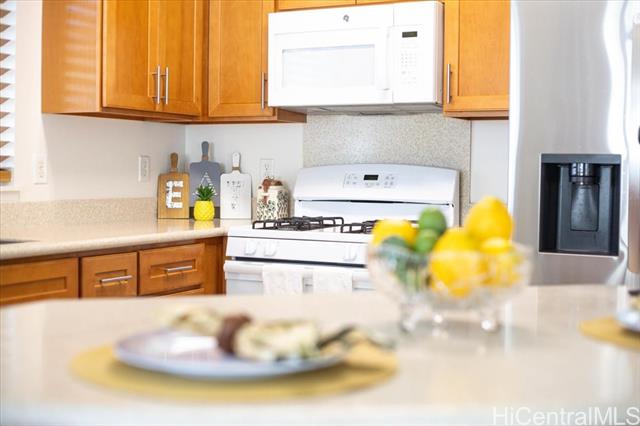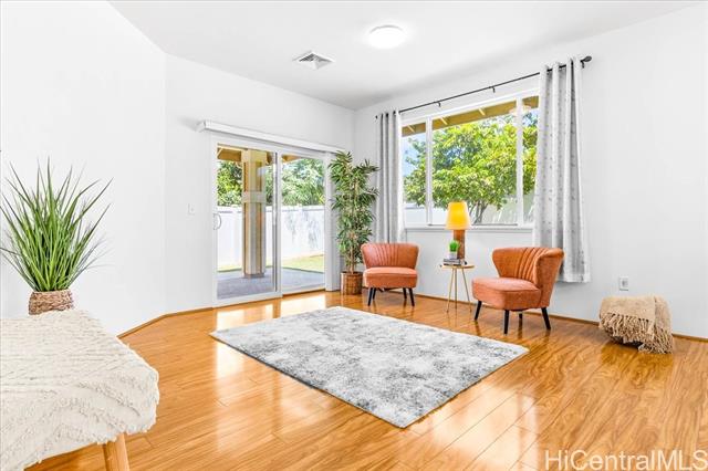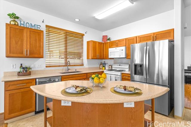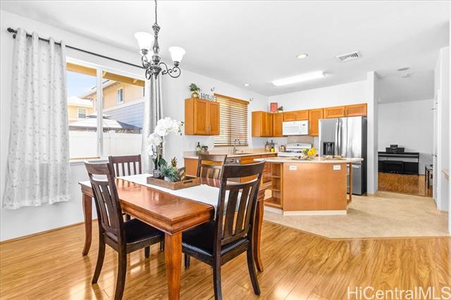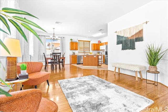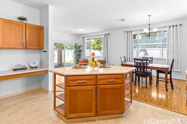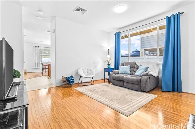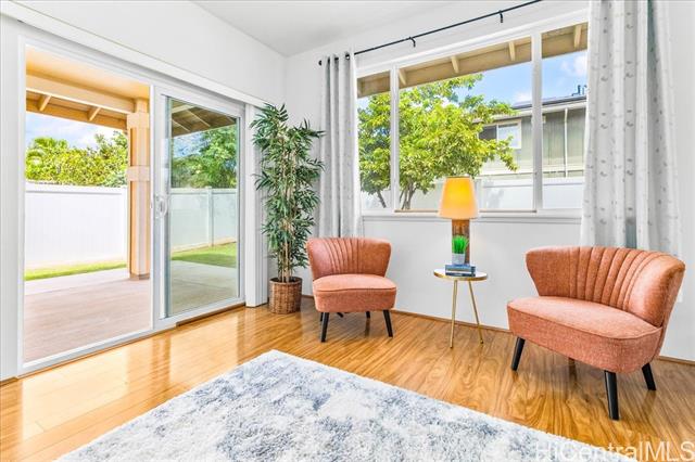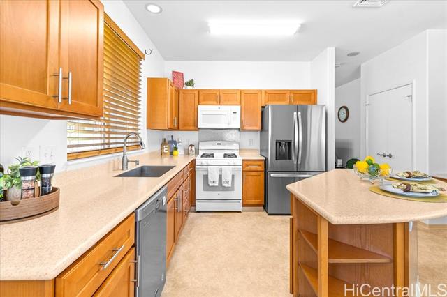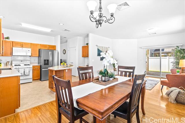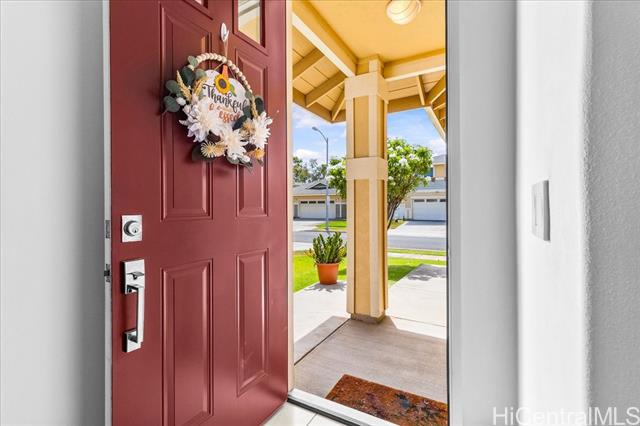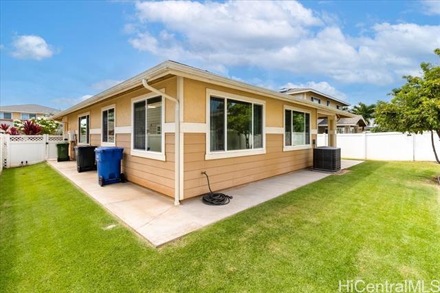 Discover your perfect single story home in Ewa Villages-Hoonani! This charming 3-bedroom, 2-bathroom has been lovingly maintained by its original owners. Step into a cozy living area that seamlessly flows into a spacious kitchen and dining space, enhanced by large glass windows and a sliding glass door. Enjoy energy-efficient features, including a gas tankless water heater and centralized AC for year-round comfort. The freshly painted interior and steamed-cleaned exterior walls provide a crisp, inviting atmosphere. Additional upgrades include an automatic sprinkler controller, a Ring camera doorbell, and a Logitech camera for peace of mind. Outside, a fully-fenced backyard with well-maintained grass awaits, perfect for entertaining or outdoor activities. This property is ideally located with easy access to H-1, restaurants, schools, premier golf courses, and the Kamakana Ali'i Mall. Don't miss this opportunity schedule your showing today and experience what this home has to offer!
