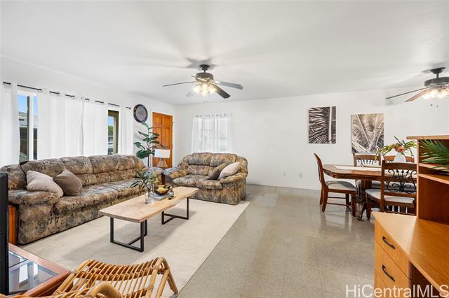 Original Owner Gem in Historic Ewa Villages. Discover the perfect blend of history and tranquility in this rarely available single- level residence. Offered by the original owner, this home has been meticulously cared for and sits on a prime lot backing directly onto the Ewa Villages Golf Course. Inside, the comfortable living and dining areas flow seamlessly together, creating an airy, open concept feel that invites the trade winds in. This home is ready for a new owner to refresh the finishes and bring their personal vision and modern upgrades to a solid, loving home. The 4 bedrooms and 2 bathrooms allow space for all, perfect for families or a home office, along with a functional 2-car carport. One or more photos have been enhanced. First Open Sunday, January 11, 2-5 PM.