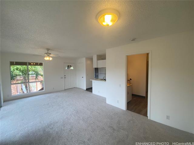 Welcome to your slice of paradise at Palm Villas II. This move-in ready corner studio unit on the second floor offers a perfect blend of privacy & modern convenience. Recently reinvigorated with new carpeting & vinyl plank flooring, the interior provides a clean, contemporary feel throughout the open living area. The space is thoughtfully equipped for everyday comfort, featuring a gas range for home cooking a refreshing ceiling fan & window air conditioner, combined with windows on two sides for natural cross-breezes, ensure you stay cool and comfortable year-round. Step out onto your private balcony to enjoy the Hawaiian breeze or take advantage of your dedicated covered parking stall. A unit in the Palm Villas II complex is more than just a place to live; it’s a home in a vibrant community. This pet-friendly complex boasts a variety of amenities designed for relaxation and social connection, including a secured pool, a BBQ area for weekend cookouts, & a dedicated recreation space. An on-site resident manager ensures the community stays well-maintained, while ample guest parking makes hosting a breeze. Outside your door, you are minutes away from the best offerings of Ewa Beach.