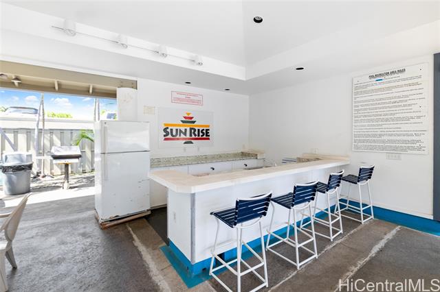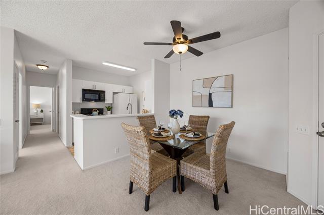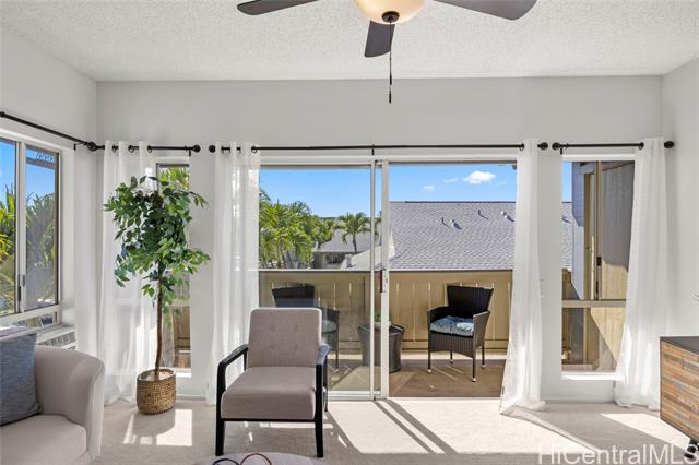 Located in the desirable Sun Rise community, this updated 2-bedroom, 2-bath residence includes two parking stalls and is situated on the top floor of a low-density building with only two units per level, offering privacy and a peaceful living environment. The kitchen opens to a spacious living area, while natural light fills the home from the lanai, showcasing serene treetop views. The unit has been thoughtfully refreshed throughout, including kitchen cabinet repairs and repainting, updated lighting and ceiling fans, and bathroom improvements. Conveniently located in Ewa with easy access to shopping, dining, entertainment, and golf courses—this move-in-ready home is a great opportunity. *Pet friendly (buyer to verify).