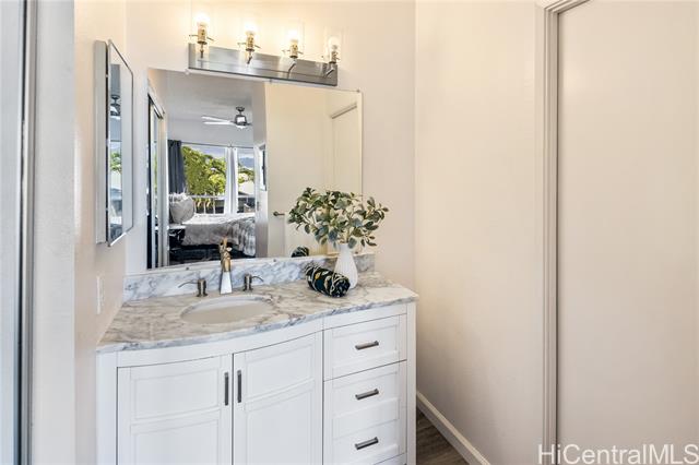 This modern, open-concept residence at Sunrise offers a sleek aesthetic and an inviting sense of space throughout. Designed for both comfort and style, the home features a generous living area that flows seamlessly to a spacious lanai—ideal for unwinding at the end of the day. Both bedrooms are well-proportioned, providing a calm and relaxing retreat.The unit includes two bedrooms, two full bathrooms, and two parking stalls. Vinyl plank flooring complements the home’s clean, modern design, while the updated kitchen and bathrooms showcase tasteful finishes that enhance the overall sophistication.Conveniently located near Foodland, Longs Drugs, banks, gas stations, Ka Makana Ali?i, Laulani Village, golf courses, public parks, and a variety of dining and shopping options, this home offers contemporary living with everyday convenience. Assumable VA Loan at 2.75% interest rate with an approximate loan balance of $298,335.