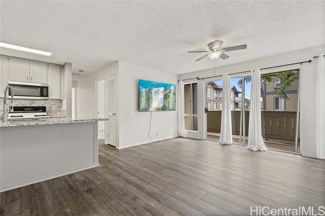 Welcome to Ewa Gentry Sunrise! This well-maintained 2-bedroom, 2-bath condo with two covered parking stalls offers a comfortable and convenient lifestyle in one of Ewa’s desirable communities. The home features vinyl flooring throughout the living room, kitchen, and primary bedroom, ceramic tile in both bathrooms, and cozy carpet in the second bedroom, offering a perfect blend of style and comfort Enjoy an open-concept layout, a functional kitchen, and a private lanai ideal for relaxing or entertaining. Plenty of guest parkings right in front of the unit. Conveniently located near parks, schools, shopping, and just a short drive to the beach.