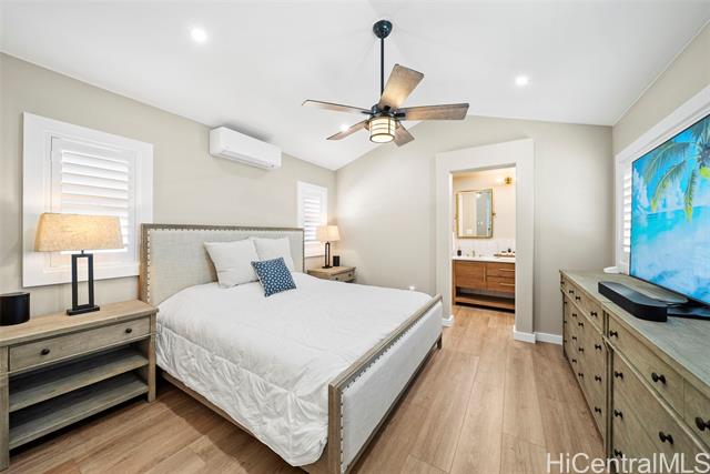 Experience island living in the coveted Hoakalei Kamakana community. This upgraded single-story 3-bedroom, 2-bath residence features extensive enhancements and custom modifications completed since purchase. Designed for comfort, the home showcases wide-plank luxury vinyl flooring, designer lighting, and a bright open-concept layout ideal for entertaining. The chef’s kitchen offers a spacious walk-in pantry, generous storage, and premium Thermador appliances with an induction cooktop. Each bedroom serves as a private retreat with split A/C systems and custom-designed closets. The finished two-car garage includes epoxy flooring, recessed lighting, and an EV charger, plus an additional parking pad for three spaces. Energy-conscious upgrades include 20 leased photovoltaic panels, a Tesla battery, and a solar water heater. Exterior features include full rain gutters and automated front and backyard irrigation. Enjoy resort-style amenities including a pool, fitness center, hot tub, tennis and pickleball courts, with Spectrum cable and internet included. Ideally located minutes from LineUp at Wai Kai and championship golf courses, this home blends luxury, efficiency, and island livingNow