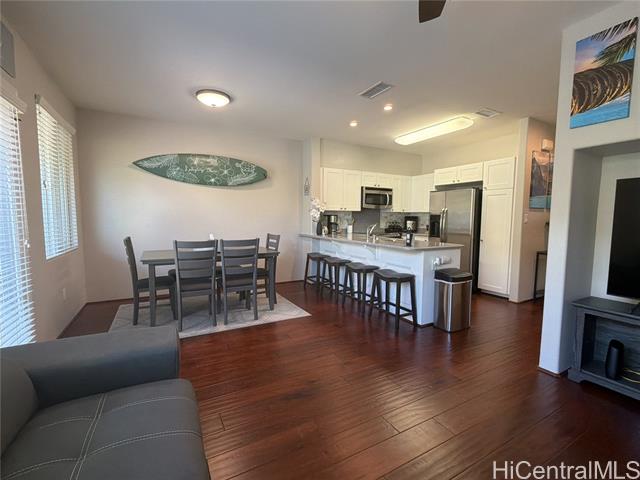 Aloha and welcome home! This stunning 3-bedroom, 3-bathroom townhome in the heart of Hoakalei Resort is move-in ready and waiting for you — turnkey and full of aloha spirit! Lightly used as a vacation retreat just a few times a year, this home shows like new. Every bedroom is a private ensuite retreat — one on the ground floor and two upstairs on opposite sides, perfect for guests, family, or working from home. Beautiful hardwood floors, stainless steel appliances, solar water heater, enclosed private yard, and a detached 2-car garage complete the package. Monthly fees cover cable, internet, sewer, and water — spend less time on bills and more time at the pool. Ka Makana Swim Club pool, gym, and BBQ included! Nestled between two golf courses and minutes from Ka Makana Ali'i Mall and the exciting Wai Kai Lagoon development — this is west Oahu living at its finest. Furniture negotiable. Just bring your slippahs and your aloha. Don't wait — this one won't last! Some photos may be digitally enhanced. Professional photography coming soon.