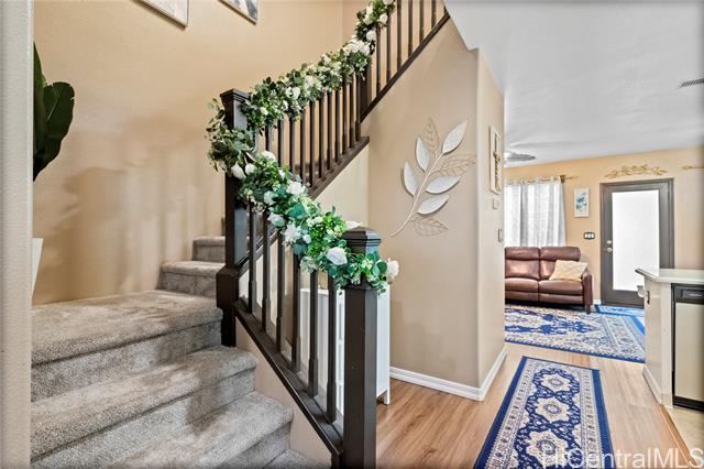 Like a model home. Located in the desirable Hoakalei Resort Community. This beautiful 3-bedroom and 3-full bath town home is a must see. Along with the Kitchen, living and Dining areas, the ground floor also contains 1-bedroom and 1-full bathroom. Nestled between the home and the private enclosed 2-car garage is your secure private yard and covered lanai that creates a relaxing space to enjoy your morning coffee or to unwind at the end of a busy day. Located upstairs is the spacious primary bedroom with its full bath and walk in closet. As a bonus the second upstairs bedroom also has its own adjoining full bathroom. Resort style amenities centered around the private Hoakalei Country Club with the Ernie Els designed golf course and the Ka Makana Swim Club. Monthly taxes are based on 2025 taxed assessed value.