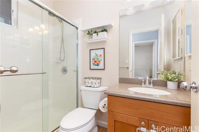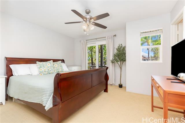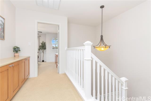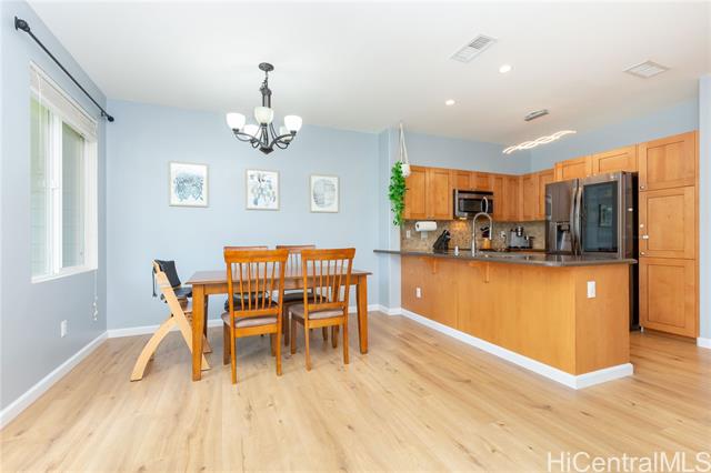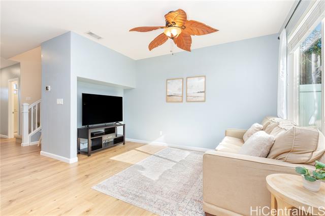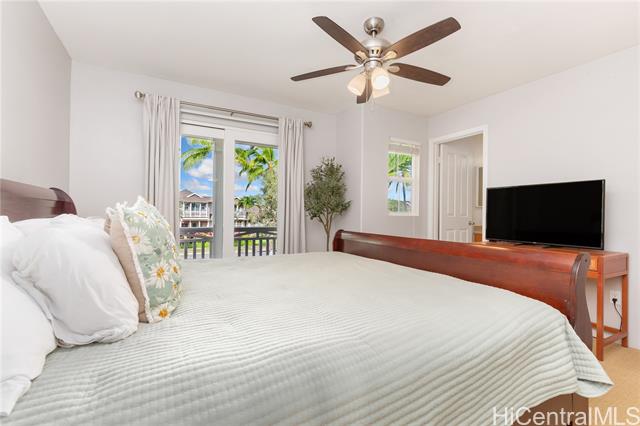 VA ASSUMABLE available to eligible VA buyers! Discover this well-maintained townhome in the sought-after Ka Makana @ Hoakalei community. On the ground floor, you'll find a bedroom with a full bathroom, as well as the kitchen, dining, and living areas. Step outside to your private covered lanai and yard, which lead to a two-car enclosed garage and a separate laundry room. A walking/jogging path is conveniently accessible right from your front door. Inside, enjoy the comfort of central AC, while the new vinyl plank flooring throughout the living, dining, and kitchen areas adds a modern touch. Upstairs, two additional bedrooms each feature their own ensuite bathrooms, with the primary bathroom offering dual vanity sinks and a walk-in closet. This home is located minutes from Wai Kai Lagoon, Ka Makana Ali‘i Mall, shopping centers, restaurants, banks, and grocery stores. Monthly fees cover Spectrum Internet, Cable, and Phone services, along with sewer/water, common area maintenance, and access to the swim club/fitness center. Ka Makana at Hoakalei also offers multiple parks and green spaces, perfect for outdoor recreation.