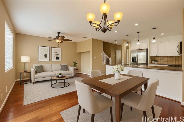 Highly desirable townhome in Hoakalei at Ka Manaka with a bedroom and bathroom on the main level! Live in the community with a community pool, hot tub, fitness center, tennis/pickleball court, dog park and 3 kids parks! Close proximity to the Laulani Shopping Center, including Safeway, Starbucks, Pet Smart, shopping, banking and more! *VA Assumable option at 2.375% (to qualified veteran Buyers)*