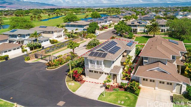 OPEN HOUSE on SATURDAY, March 28th from 2-5PM. Buyer incentive available! Seller providing $6,000 closing credit to assist with HOA fees! Best-Priced Home on the Hoakalei Golf Course — Corner Lot with Views! Enjoy golf course living without the worry of stray golf balls. This corner-lot home offers privacy, space, and scenic fairway and mountain views. The bright, open-concept floor plan features a modern kitchen with state-of-the-art appliances, a large island, and generous living and dining areas designed for both comfort and entertaining. Upstairs includes a versatile workspace ideal for remote work or study, along with spacious bedrooms and ample closet storage throughout. With 26 owned solar panels, enjoy energy efficiency and lower monthly costs year-round. Located in a meticulously maintained community with wide streets, lush landscaping, walking and biking paths, multiple pools, and access to the private Wai Kai Hale Lagoon for paddle boarding, kayaking, or relaxing in the sun. Live the Hoakalei lifestyle—vibrant, connected, and perfectly positioned. View 3D tours, video, and high-res photos via the virtual tour link (chain link icon).