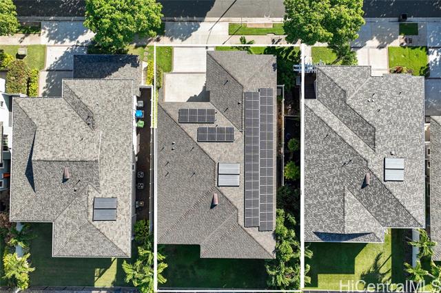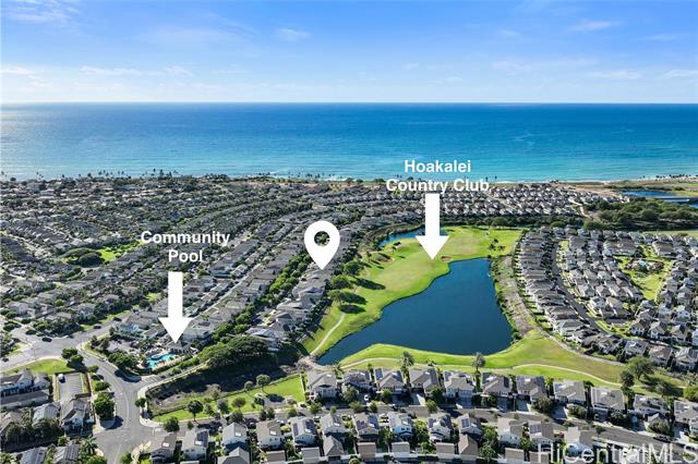 This beautifully built Model 60.40 home in Kuapapa at Hoakalei features 5 spacious BR & 4.5 BA, with stunning views of the golf course. Equipped with 39 OWNED PV panels, this home is both elegant & energy efficient. As you enter, you'll be greeted by soaring ceilings, a striking chandelier, & grand sweeping staircase. The home is filled with natural light, thanks to numerous windows adorned w/ plantation shutters throughout. The gourmet kitchen offers granite countertops, high-end SS appliances, & ample cabinetry for storage. The primary suite includes an additional room upon entry & a private walkway leading to a large second-story lanai with great golf course views. One-bedroom, full BA and a half BA are conveniently located on the main floor. The main level features beautiful, engineered hardwood floors, while the second floor is equipped w/ laminate flooring. The home also includes a 2-car garage, a single garage, & additional driveway space for parking. The HOA fees cover cable/internet, with access to community swimming pool/hot tub & Wai Kai Hale Club. Just minutes away from shopping, dining, schools, beaches, & the Wai Kai waterfront area w/ its unique attractions.