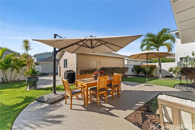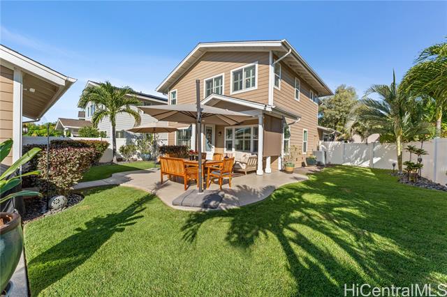 This is the one you’ve been dreaming about! An immaculate 4 bedroom, 3 full bath home perfectly positioned across from a peaceful open-space park in the highly sought-after Hoakalei@Kuapapa community. Featuring a desirable main-floor bedroom and full bath, this spacious and thoughtfully designed home offers flexibility and comfort for any lifestyle. With 23 owned Tesla PV panels, 2 owned Tesla batteries, and a solar hot water heater, you’ll enjoy low energy bills and sustainable living year-round. The extended garage with custom built ins provides ample storage, while the expanded lanai and oversized lush backyard make this home an entertainer’s paradise. Additional highlights include numerous builder upgrades, an HOA-approved 3rd parking pad, plantation shutters throughout and gutters to name just a few. The low monthly HOA fee includes access to amenities like the pool, hot tub, lounging areas, and access to the Wai Kai Lagoon, HD cable and internet. Located just minutes from the exciting new Wai Kai Complex, with top-tier restaurants, shops, a farmers market, and even a surfing ranch – all just blocks from the ocean. Bring your most discerning buyer before it is too late.
