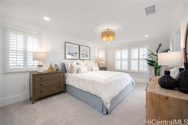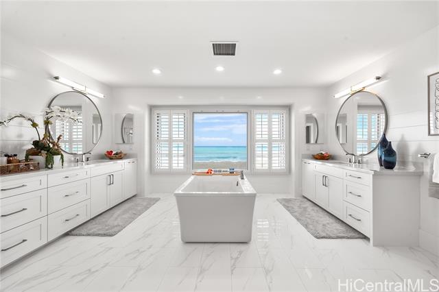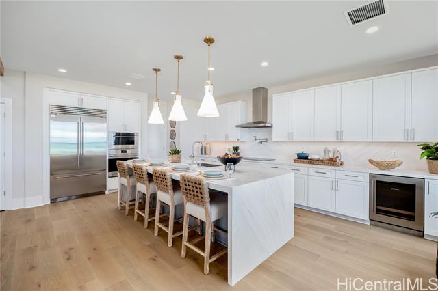 Step into refined coastal luxury with this expansive new construction residence, offering over 4,000 square feet of beautifully designed living space. With five bedrooms, four-and-a-half baths, a dedicated study, a covered lanai, and a private courtyard, this home seamlessly blends functionality with sophistication—perfect for both peaceful retreat and vibrant entertaining. Enjoy sweeping ocean views and a full suite of elevated features, including central air conditioning, a 120-gallon solar water heater, EV charger readiness, and accommodations for a photovoltaic solar electric system. The gourmet kitchen is thoughtfully appointed with top-tier appliances: a 42” built-in Sub-Zero refrigerator, Wolf induction cooktop, convection oven, microwave with drop-down door, and an Energy Star-certified Bosch dishwasher—all designed for culinary excellence. Outdoors, professionally landscaped front and rear yards with automatic irrigation offer a lush, low-maintenance setting for gathering, relaxing, or simply enjoying the breeze. Pohinahina 75.20 A (Reverse) floorplan. $20,000 Option Credit available to buyers, applicable toward options or upgrades. Completion December 2025!