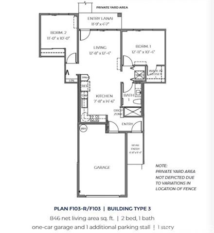 MOVE IN READY! This single ground level 2 bedroom, 1 bath condominium flat consists of 846 square feet of net living area. Step in from the entry lanai and enter the open concept living room and kitchen. Off the kitchen is the primary bedroom with a walk-in closet and a nearby bathroom with a vanity sink and walk-in shower. Across the living room, the secondary bedroom has a generously sized closet with mirrored sliding doors. Attached to this home is a single-car garage and one additional uncovered stall. Air conditioning and modern appliances including a range/oven, micro-hood, dishwasher, refrigerator, and washer/dryer allow for ease of living. RedTag Sales Event, special pricing ends 2/1/26!