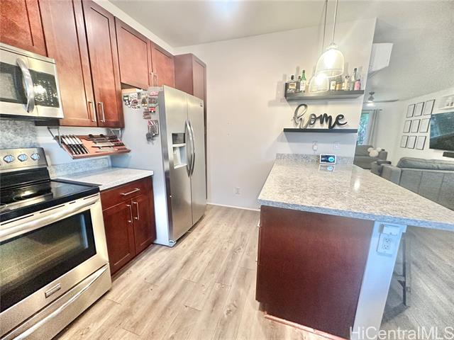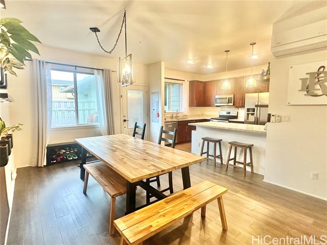 A really amazing opportunity to buy into desirable Haloa at Hoopili! These townhomes are located closer to the parks for the kids and pets. Haloa has a larger, more open floorplan feel with no units above or below and spacious open concept living, a large primary bedroom and bath with custom IKEA closet system, a welcoming front yard and buffering back yard. Modern touches for the new owner, such as open shelving, drop down knife drawer, and even a self-watering living wall. Additionally, this unit is well located close to guest stalls, street parking and an open turn around area, adding to the easy going open air feel of this home. Come see and compare - feels as spacious as a single family home!