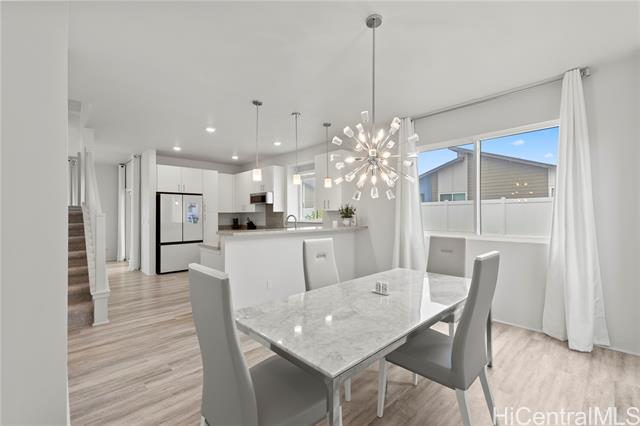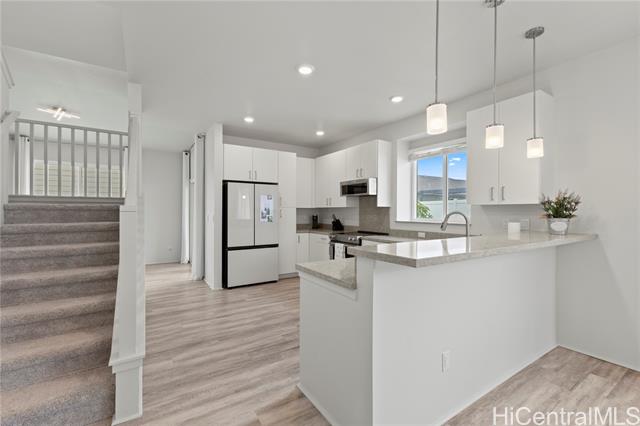 Rarely available, this 2022-built 4BR/2.5BA Hoopili Ikena single-family home that blends modern comfort with island living with a lush tropical garden featuring mango, mountain apple, Barbados cherry, wi apple, papaya, guava, pandan, and lemongrass. Set in one of Oahu’s fastest-growing planned communities, enjoy access to the SoHo Center & pool, neighborhood parks, playgrounds, dog/tot lot, soccer fields, and future schools. Conveniently located near Ka Makana Ali‘i, UH West O‘ahu, beaches, popular water parks, new restaurants, expanding infrastructure, freeway access, and the new 24/7 Don Quijote Asian food store. This is your chance to own a fairly new home in a vibrant, booming neighborhood — don’t miss it!