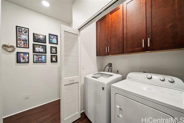 This beautiful new home is located in the highly desired community of Hoopili. It offers easy access to shopping centers, the new rail system, and the highway.. This house is a well-maintained property with three bedrooms and two bathrooms. It is connected to natural gas, which provides several advantages. The gas range in the kitchen allows for efficient and precise cooking. Additionally, a tankless water heater ensures instant hot water while saving on energy consumption. There is also a gas BBQ stub, providing a convenient setup for outdoor grilling. While the current washer and dryer are electric, there is a gas hook-up available. Outside, the home features a spacious yard, perfect for entertaining, or enjoying outdoor activities. The property is equipped with 15 owned Solar (photovoltaic) panels and 2 Tesla Batteries, 5 ceiling fans, Plantation shutters throughout, and a dedicated 20 amp in lanai for the smoker. The large covered lanai provides a comfortable space to relax and appreciate the beautiful surroundings. This community also offers a range of other amenities, including playgrounds, a pool, a rec center, and a pickleball court.