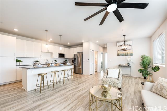 Seller offering $5,000.00 Credit to Buyer! Modern Island Living Awaits at DR Horton’s Kaikea in Ho'opili. Conveniently Located 2 Bedroom 1 Bath Home with Enclosed Garage Available NOW! Open-concept layout seamlessly connecting the living, island dining & kitchen spaces ideal for entertaining & turnkey move-in ready! Contemporary sleek finishes & stainless steel appliances. Spacious bedrooms with plenty of natural light & storage. On & Off Access to the Freeway is ideal in this Masterplan Community with tons of amenities, including parks / dog parks, playgrounds & eateries, coffee shops & service related businesses like chiropractors, spa services etc. Dining & Shopping options at Ka Makaha Alii Mall, Schools with UH College nearby, 24 Hour Fitness, Costco, Walmart & so much more. Jump on & off the Hawaii Skyline Rail Transit Station or take a drive to Ko Olina, Four Seasons or Disney Aulani Resort. This West Oahu gem is a home setting just perfect for first-time buyers, down-sizers, or investors looking for a fantastic opportunity in a growing highly-sought after neighborhood! Seller Credit & a Great Listing Price, Don’t wait! First Open Home Sunday Dec 8th 2pm to 5pm