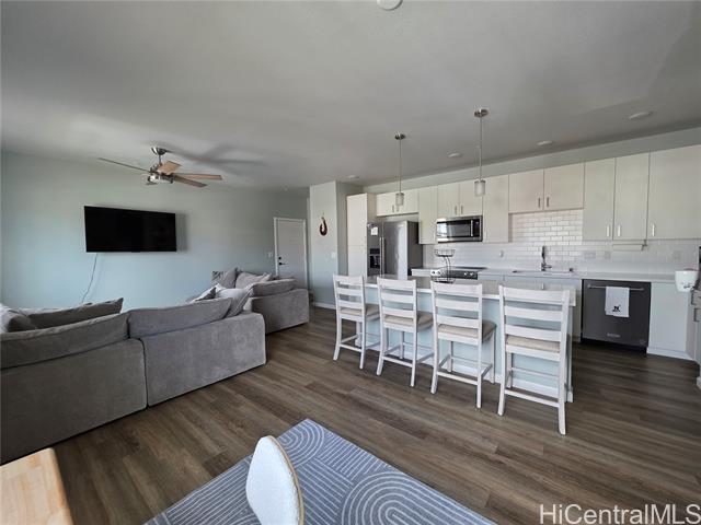 Discover easy, modern living in this larger-than-typical beautifully maintained 1-bed, 1-bath condo in the heart of Ho‘opili. This home features an open-concept layout, split A/C, stainless steel appliances, in-unit laundry, and thoughtful finishes throughout. Large windows bring in great natural light, creating a bright and inviting space. Located in one of West O‘ahu’s fastest-growing communities, you’ll have access to resort-style amenities including pools, parks, playgrounds, dog parks, and community events. Conveniently close to Ka Makana Ali‘i, rail stations, UH West O‘ahu, and freeway access, this home offers both comfort and connectivity. Ideal for first-time buyers, downsizers, or anyone seeking a low-maintenance lifestyle in a vibrant, walkable neighborhood.