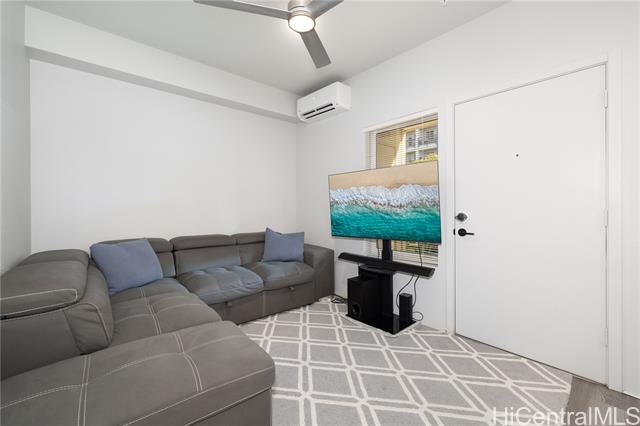 Welcome home to this beautifully maintained ground-floor residence in Ho'opili's Kaikoi community. This thoughtfully designed 2-bedroom, 2-bath home also features a versatile den that can easily be used as a 3rd bedroom, home office, or flex space to suit your lifestyle. Part of the county's "Affordable Restricted" program, this home offers modern comfort and everyday convenience. Enjoy split-system air conditioning, stylish vinyl plank flooring, plush wall-to-wall carpeting, and abundant natural light. The contemporary kitchen is a standout, featuring white shaker cabinetry, quartz countertops, and stainless steel appliances-perfect for both daily living and entertaining. Step outside on one of your two lanai's to unwind with your morning coffee or relax in the evening as the day winds down. The Ho'opili planned community offers exceptional amenities, including a pool and recreation center, keiki park, dog park, pavilion for gatherings, and pickleball and basketball courts. Located just minutes from shopping, dining, freeway access, and walking distance to the new Skyline rail system, this home offers a blend of modern living, connectivity, and community convenience.