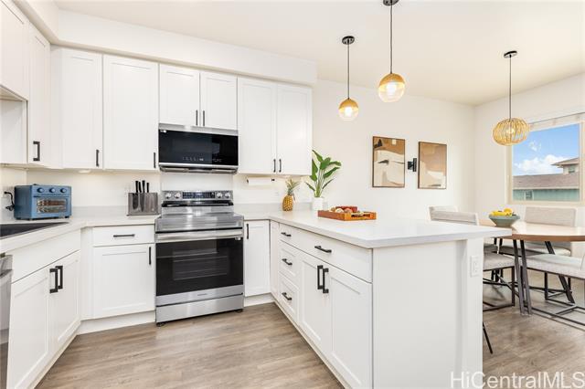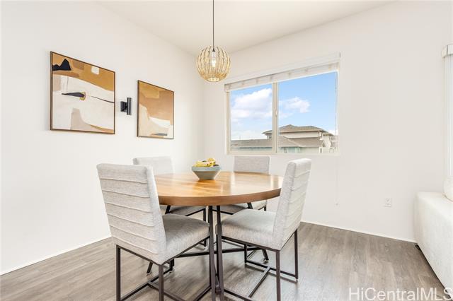 Welcome home to Kohina at Hoopili in the heart of Hoopili! This gorgeous, partially remodeled townhome includes 2 bedrooms, 2.5 baths, attached 1-car garage and 2 additional tandem parking! Located on the cool side of the building, this unit is just steps away from Festival Street, Teaspresso, Dominos, and Sage Creamery! If you hate carpet, you're going to love that this unit has gorgeous luxury vinyl planking throughout! Hardware and fixtures have been beautifully updated, and the character throughout the home is undeniable! Be a part of all that Hoopili has to offer including, but not limited to: dog parks, kiddie parks, community pool, pickleball courts, basketball and volleyball courts, local businesses, and so much more! Hoopili boasts on and off freeway access, (3) different Skyline rail stations, and is within <30 minutes from Schofield, Wheeler, Pearl Harbor and Hickam AFB. Call your favorite local Agent to schedule your private showing today! First Open House weekend, Saturday, 1/17 and Sunday, 1/18 from 2-5pm! See you there!