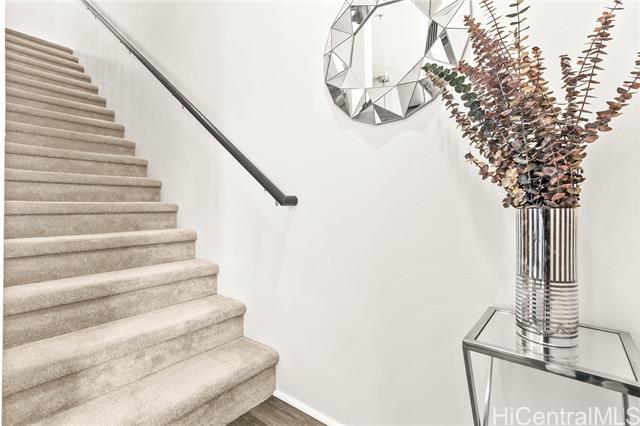 Welcome to Kohina at Hoopili! This beautifully maintained immaculate 2-bedroom, 2.5-bath townhouse offers comfort, style, and modern convenience in one of West Oahu’s most desirable communities. Enjoy an open-concept layout featuring fresh new paint, upgraded light fixtures, split A/C, water softener connection, and updated appliances. The spacious primary bedroom includes a private en suite bathroom and a large walk-in closet. A half bath is conveniently located on the main level, and the second full bathroom is upstairs near the additional bedroom. Relax on your private covered lanai, perfect for morning coffee or evening unwinding. This home also includes a one car garage plus a tandem driveway space. Ideally located near parks, a rail station, shopping, dining, entertainment, and easy freeway access—this move-in-ready home blends urban living with island charm. Don’t miss your chance to own in the heart of Hoopili!